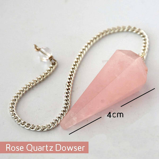 Rose Quartz Natural Energized Rose Quartz Dowser Pendulum with Chain -Decorative Showpiece - 4 cm (Crystal, Pink)