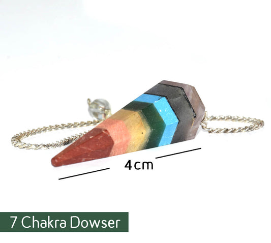 Seven Chakra Dowser Crystal Natural pendulum with Chain 1pc Decorative Showpiece - 11 cm (Crystal, Multicolor)