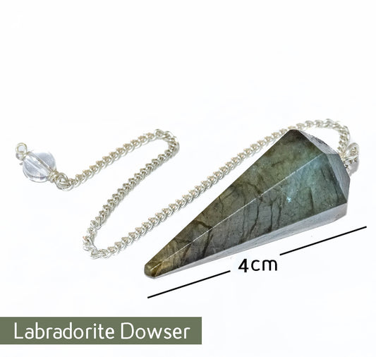 Labradorite Reiki Healing Stone Dowser Pendulum with Chain for, Depression, Business, Career growth . Dowsing, Yoga & Meditation in 3rd eye crown chakra