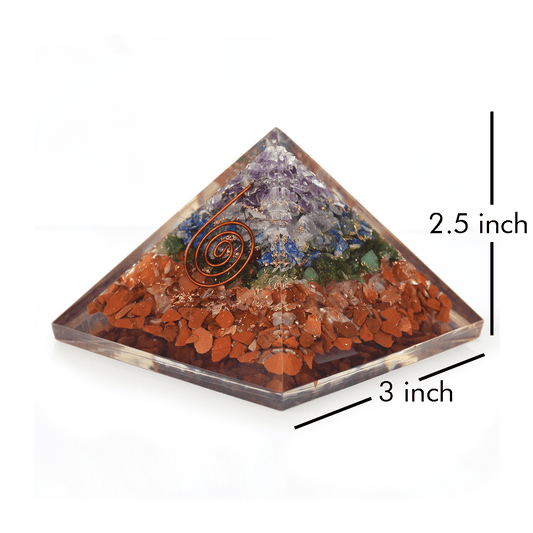 Natural Seven Chakra Crystal Stone Pyramid for Reiki & Spiritual Healing - 25cm Decorative Showpiece - 6.35 cm (Crystal, Stone, Multicolor)