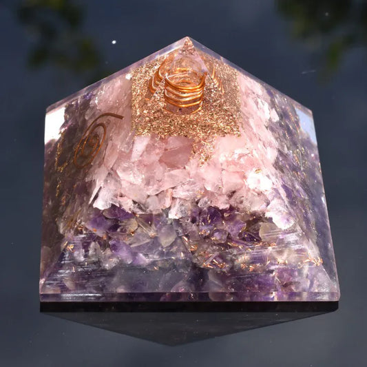 Rose Quartz & Amythest Pyramid made of Natural Crystal for Love Relationship, Marriage Relationship.