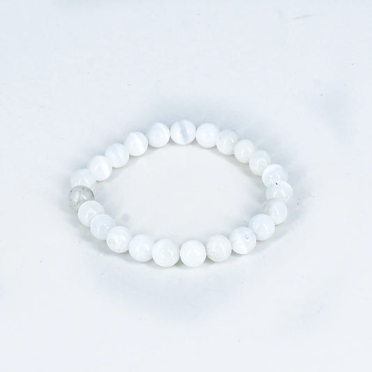 Selenite Unisex Natural Crystal Stone Bracelet (Bead Size - 8mm)